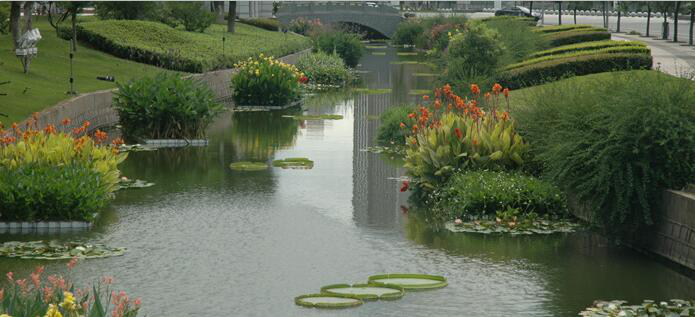 水生態(tài)修復(fù)就是通過一系列措施,將已經(jīng)退化或損壞的水生態(tài)系統(tǒng)恢復(fù)、修復(fù),基本達到原有水平或超過原有水平,并保持其長久穩(wěn)定。水體生態(tài)修復(fù)不僅包括開發(fā)、設(shè)計、建立和維持新的生態(tài)系統(tǒng),還包括生態(tài)恢復(fù)、生態(tài)更新、生態(tài)控制等內(nèi)容,同時充分利用水調(diào)度手段,使人與環(huán)境、生物與環(huán)境、社會經(jīng)濟發(fā)展與資源環(huán)境達到持續(xù)的協(xié)調(diào)統(tǒng)一。
