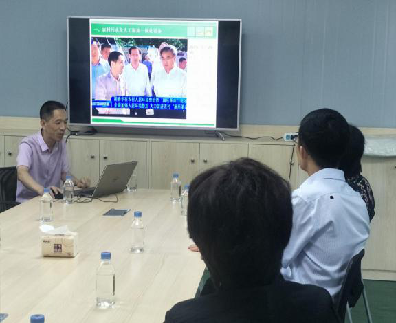 公司領(lǐng)導匯報水庫液位智能監(jiān)測系統(tǒng)和分散一體化污水設(shè)備及中風光發(fā)電的運用